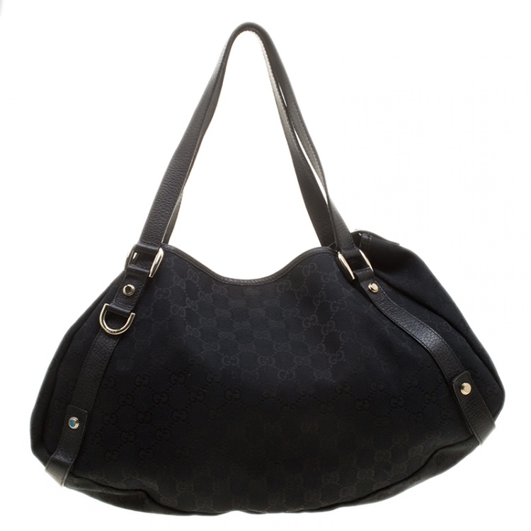 Pre Owned حقيبة كتف غوتشي جلد وكانفاس GG سوداء