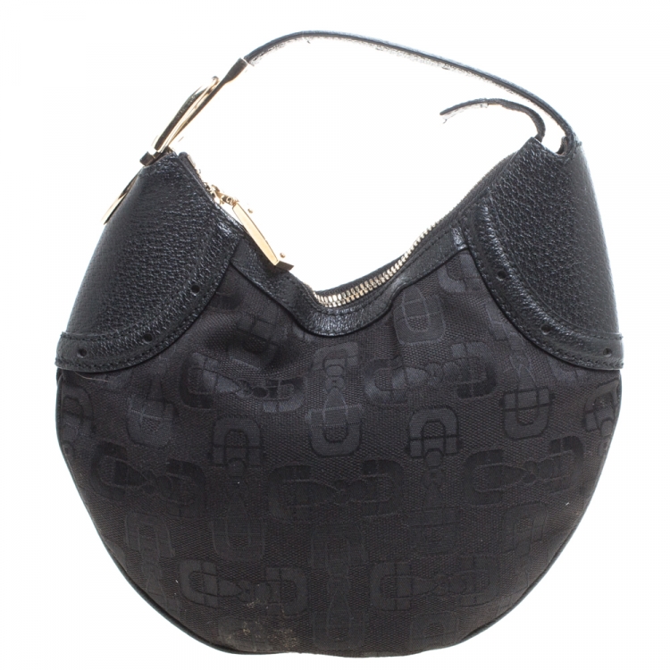 Pre Owned حقيبة هوبو غوتشي غليم جلد وكانفاس طباعة هورسبيت سوداء