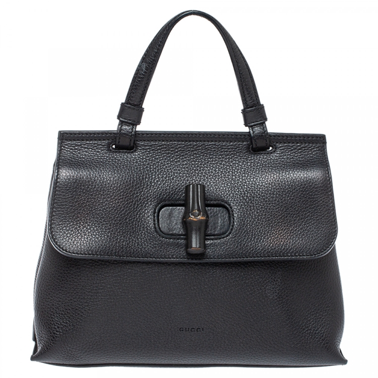 حقيبة غوتشي يد علوية ديلي بامبو جلد صغيرة سوداء