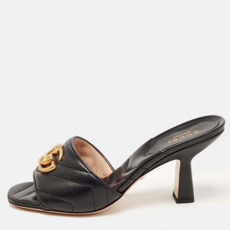 Gucci Black Quilted Leather GG Slides Size 36