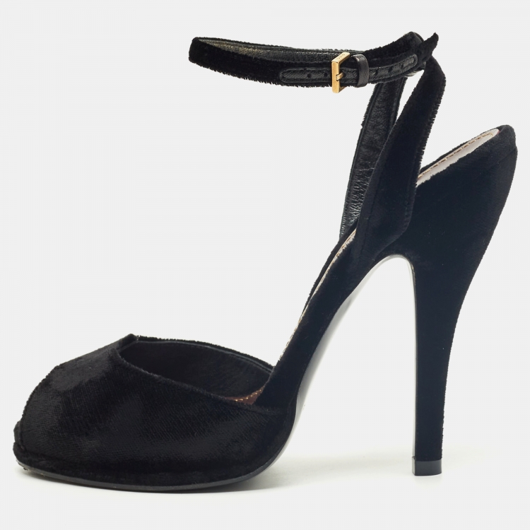 صندل بكعب مكشوف مقدمة الإصبع شريط كاحل غوتشي مخمل أسود مقاس 36.5