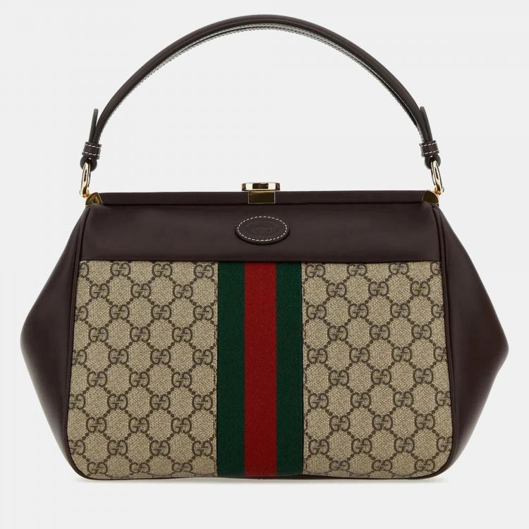 Gucci Brown Gg Supreme Fabric And Leather Handbag