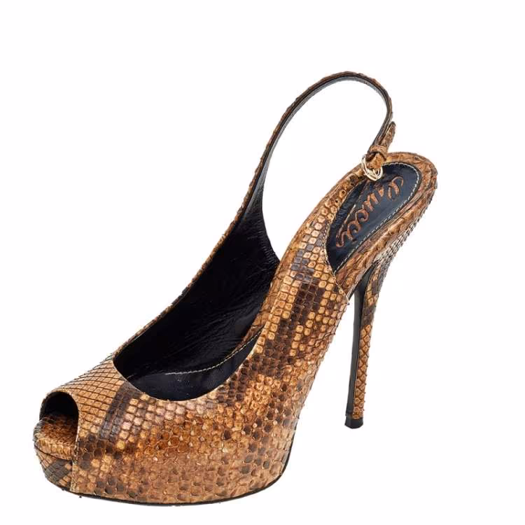 صندل غوتشي جلد ثعبان بني بحزام كاحل مقاس 37.5