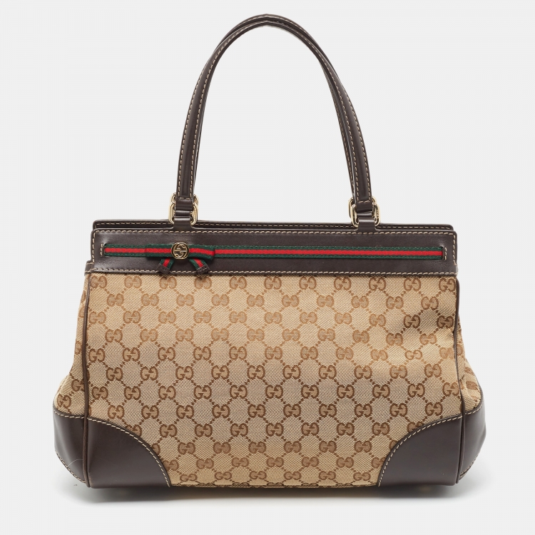 مملوكة مسبقًا حقيبة يد توتس غوتشي مايفير جلد غوتشيسيما بيج فاتح مزينة فيونكة متوسطة