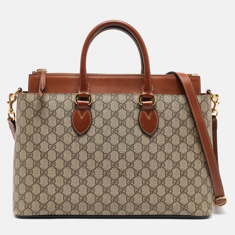 Gucci Brown/Beige GG Supreme Canvas Zip Tote