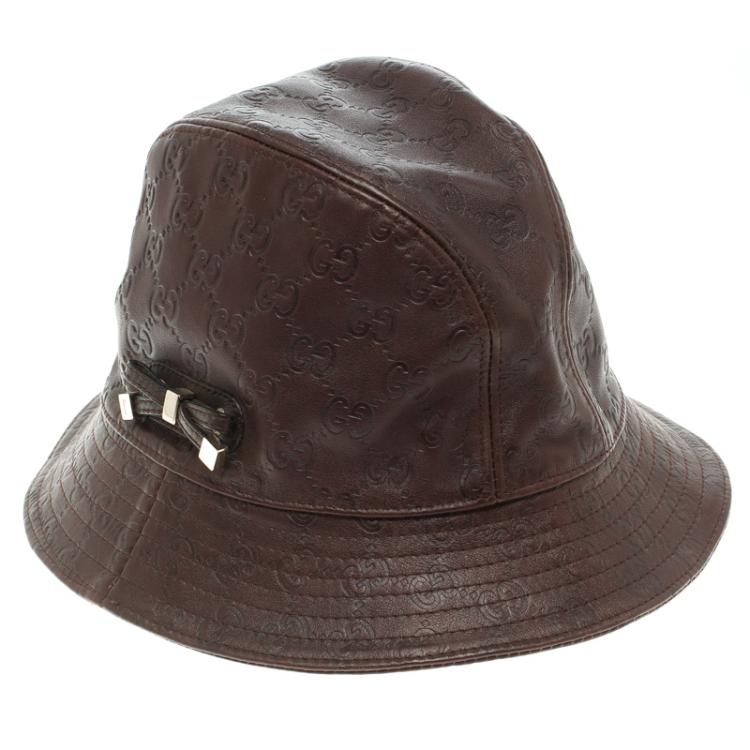 قبعة غوتشي جلد غوتشيسيما بني داكن مقاس M