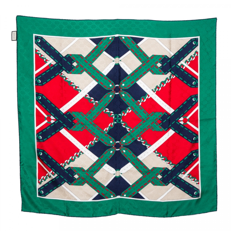 مملوكة مسبقًا وشاح غوتشي أرغيل سلسلة غوتشيسيما أخضر حرير