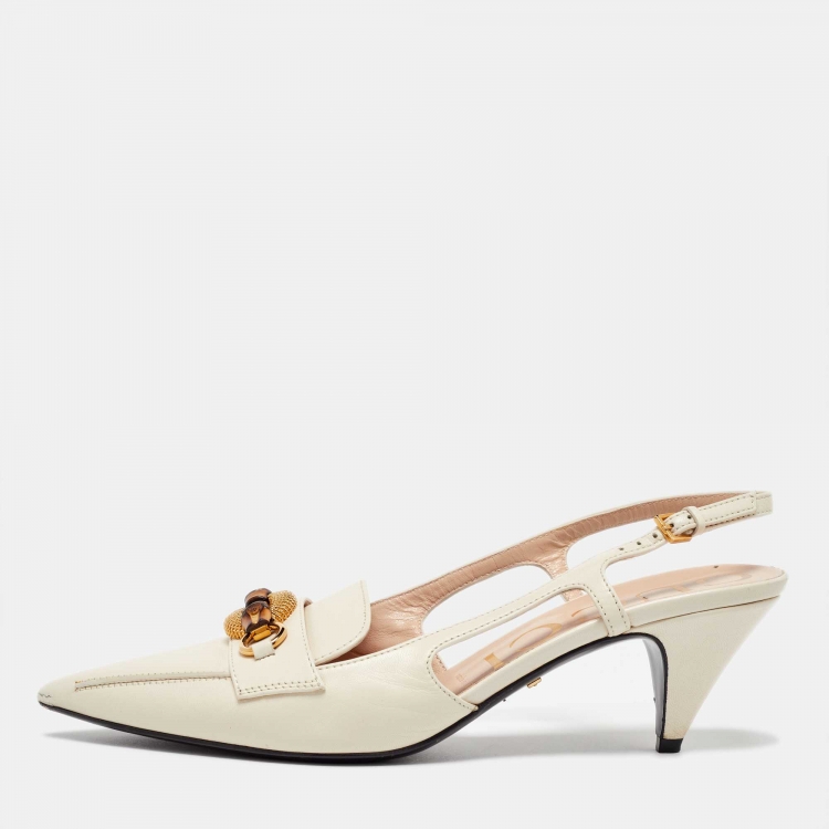 Pre Owned صندل سلايد غوتشي جلد أبيض مزين هورسبيت بامبو فتحة كعب مقاس 40.5