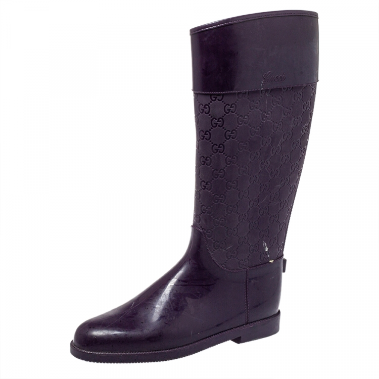 Pre Owned حذاء بوت مطر غوتشى مطاط نقش جى جى بنفسجى مقاس 41