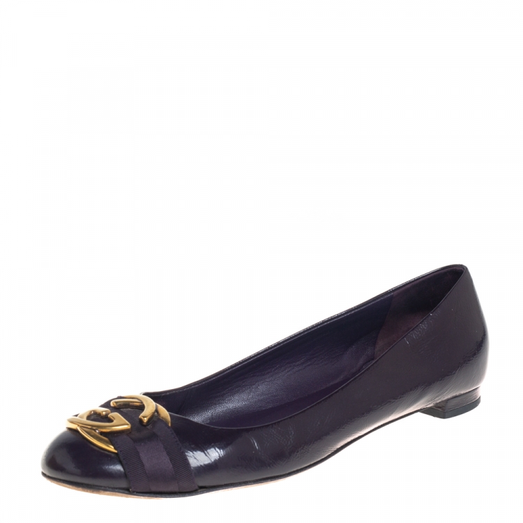 مملوكة مسبقًا حذاء فلات باليه غوتشي إبزيم حرفي جي متشابك جلد وجلد لامع أرجواني مقاس 38.5