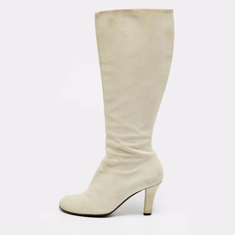 مملوكة مسبقًا حذاء بوت غووتشي "أنوك" شامواه بني بطول الركبة مقاس 40