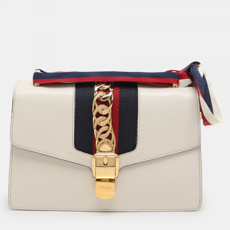مملوكة مسبقًا حقيبة كتف غوتشي سيلفي جلد أبيض بسلسلة ويب صغيرة
