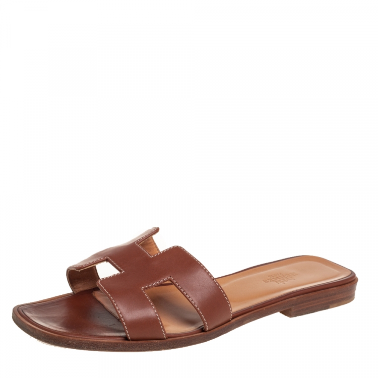 Pre Owned صندل فلات هيرمس أوران جلد بني مقاس 38