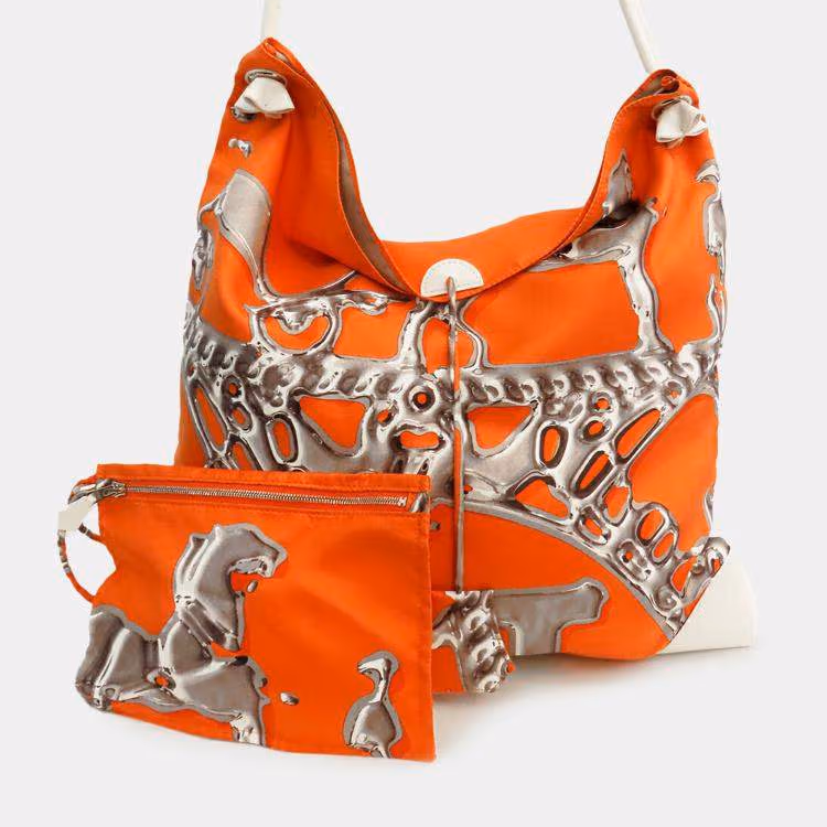 حقيبة هيرمس سيلكي سيتي 38 حرير وبرينيا فيف أرجنت برتقالي/أبيض