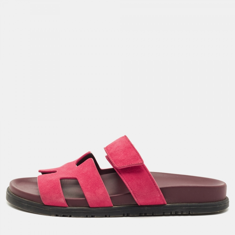 مملوكة مسبقًا صندل كعب فلات هيرمس شامواه وردي شيبر مقاس 38