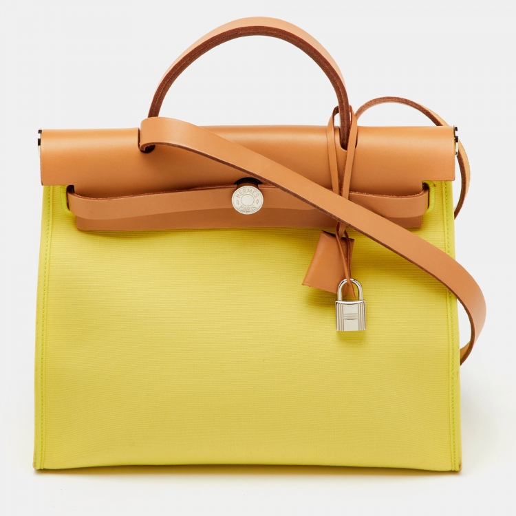 حقيبة هيرميس هيرباج زيپ 31 نسيج تويل طبيعي/سوفر جلد فيشراي