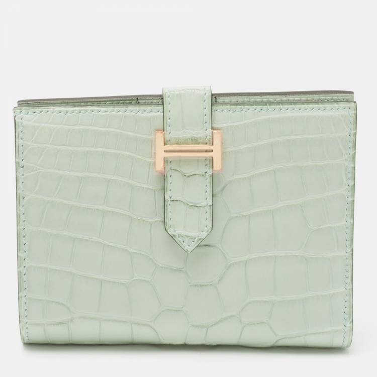 Hermes Vert d' Eau Alligator Bearn Compact Wallet