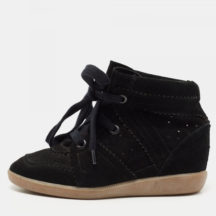 Pre Owned Isabel Marant Black Suede Bobby Wedge Sneakers Size 36