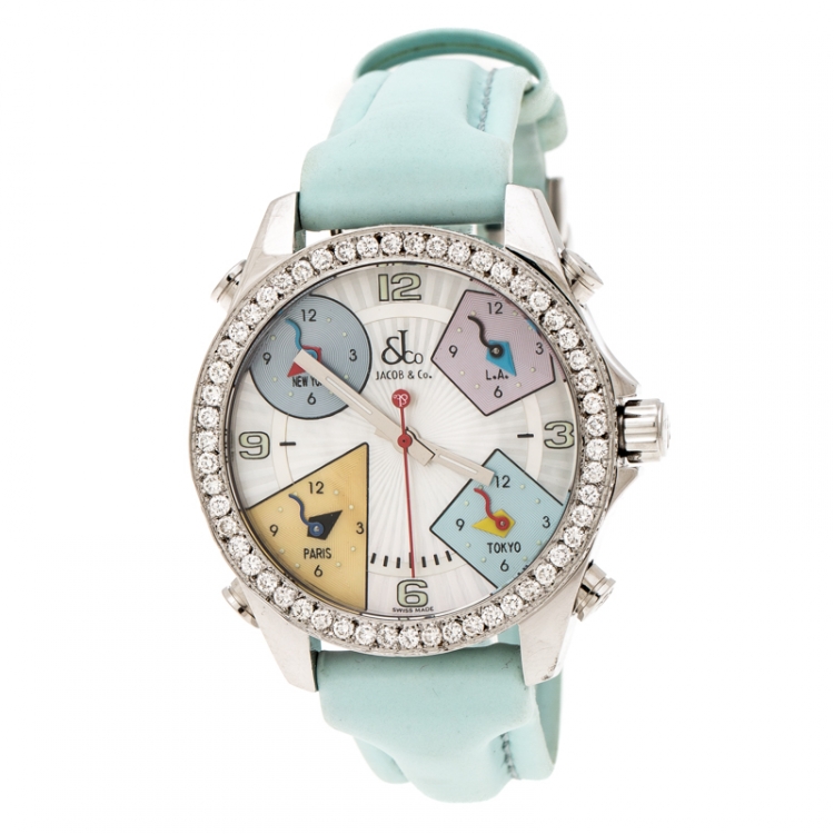 ساعة يد نسائية جايكوب & كو. فايف تايم زونز ألماس و ستانلس ستيل صدف 40 مم