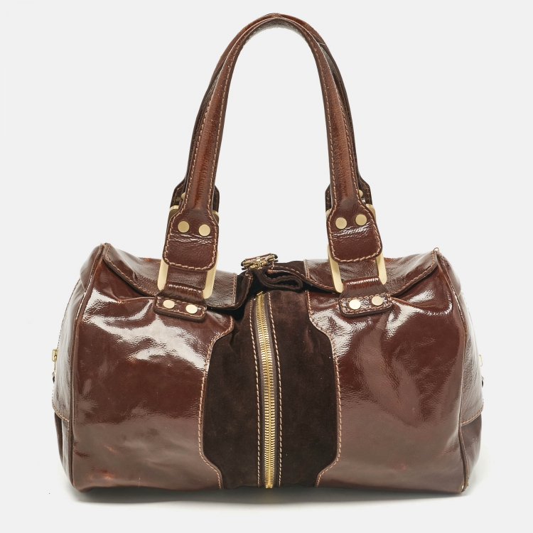 Jimmy Choo Brown Patent Leather and Suede Large Marla Bag