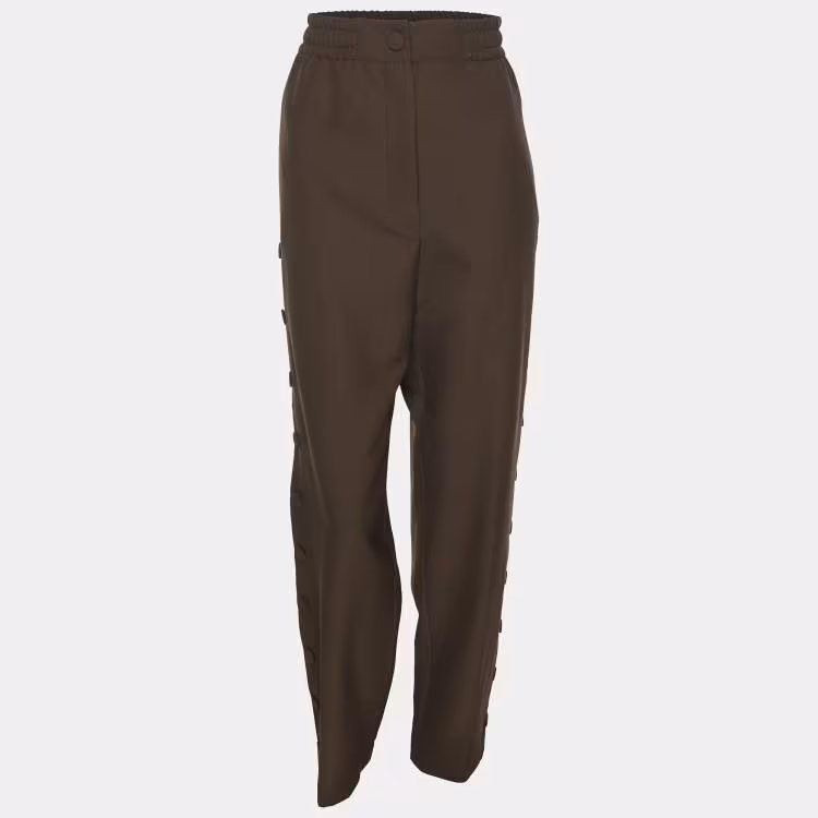 Pre Owned بنطلون جوزيف زيتوني أخضر مزيج صوف بزر جانبي مقاس متوسط - ميديم