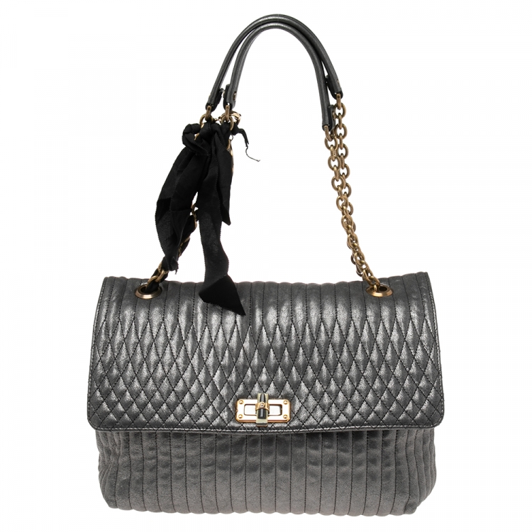 حقيبة كتف لانفين هابي جلد مبطن رصاصي ميتاليك