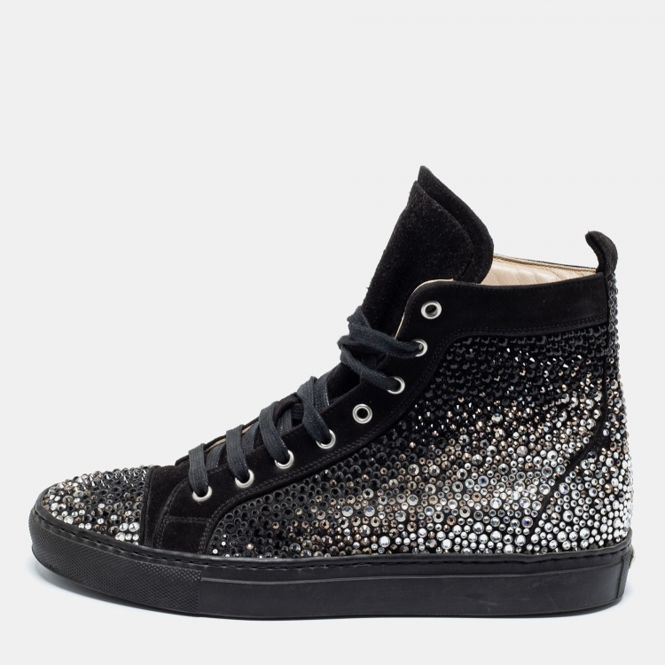 Pre Owned حذاء �لي سيلا سويدي أسود مرصع كريستال عنق طويل مقاس 38