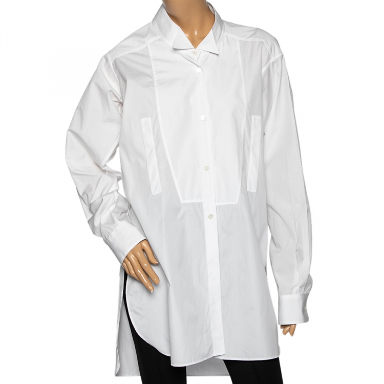 قميص لويفي قطن أبيض غير متساوي بأزرار أمامية مقاس متوسط - ميديوم