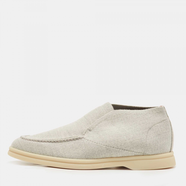مملوكة مسبقًا Loro Piana Grey Knit Fabric Open Walk Slip on Loafers Size 37.5