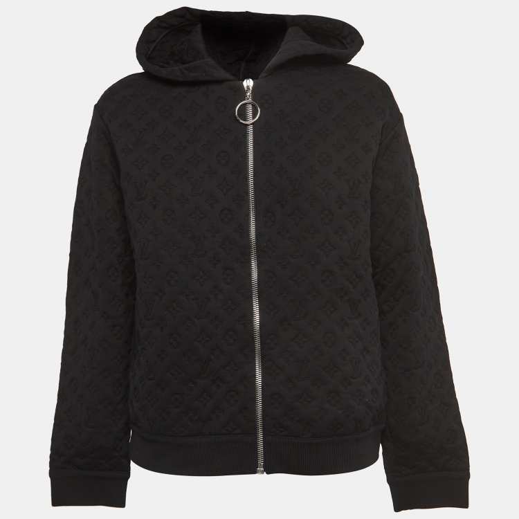 Pre Owned Louis Vuitton Black Embossed Monogram Cotton Knit Zip Front Hooded Jacket M