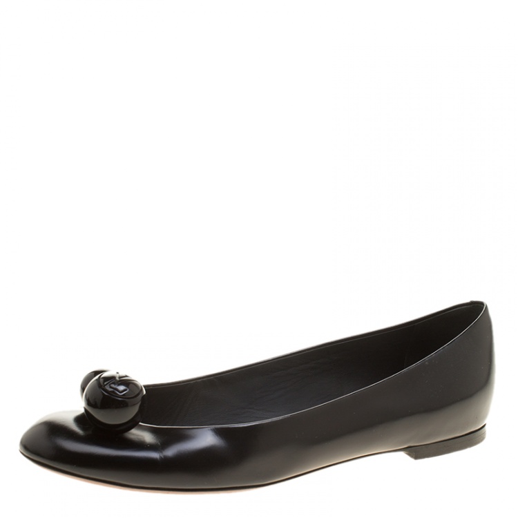 حذاء فلات باليه لوي فيتون بتي جلد أسود مقاس 37