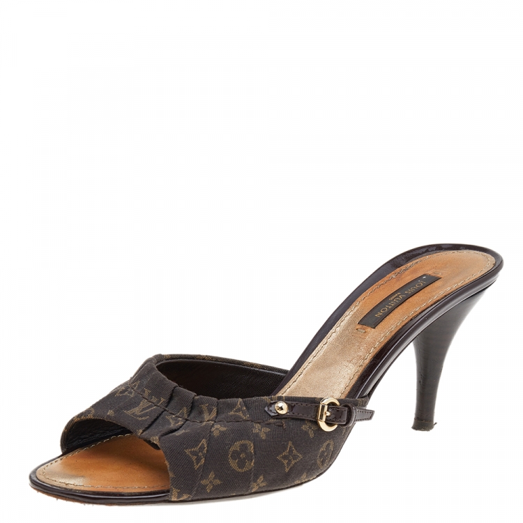 Pre Owned صندل سلايد لوي فيتون جلد لامع وكانفاس مونوغرامي بني مقاس 38