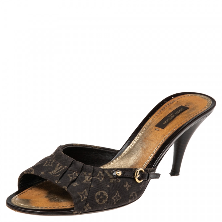 Pre Owned صندل سلايد لوي فيتون كانفاس مونوغرامي بني مقاس 40