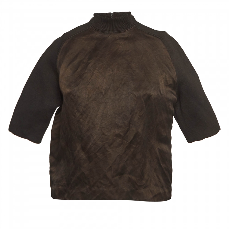 تي شيرت لوي فيتون حرير وصوف بني بأكمام راجلان مقاس صغير (سمول)