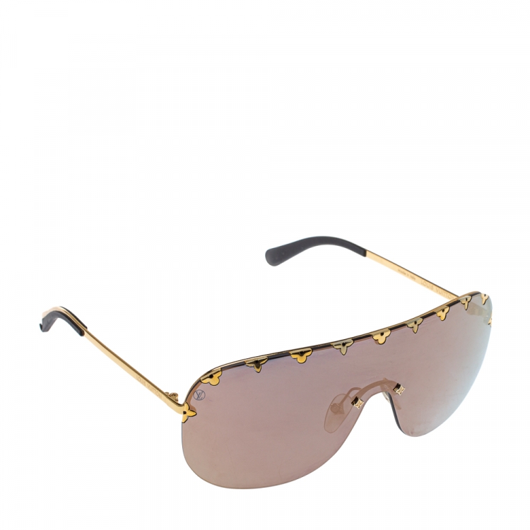 مملوكة مسبقًا نظارة شمسية لوي فيتون شيلد زد2377دبليو عاكسة ميتالك / لون ذهبي