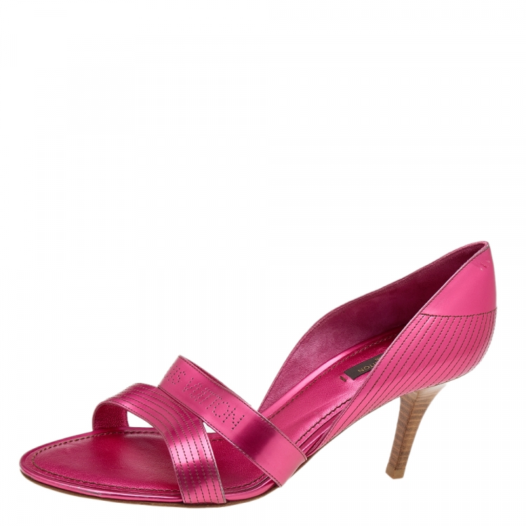 مملوكة مسبقًا صندل لوي فيتون جلد وردي ميتالك مقدمة مفتوحة مقاس 40.5