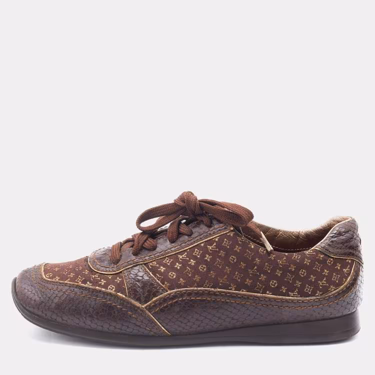 Louis Vuitton Monogram Fabric and Python Embossed Leather Low Top Sneakers Size 37