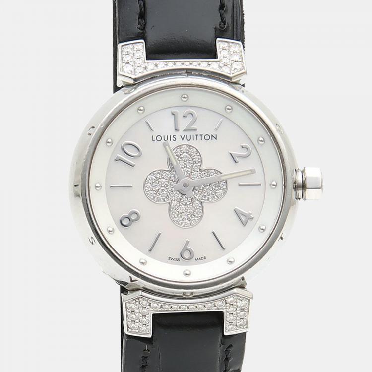 Pre Owned ساعة يد نسائية لوي فيتون تامبور فوريفر دايموند Q121P كوارتز أم اللؤلؤ ستانلس ستيل 28 مم