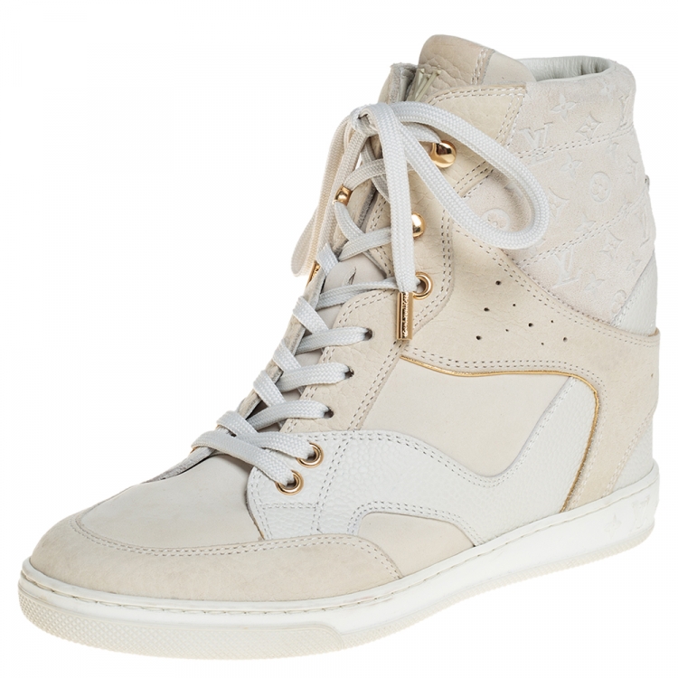 حذاء رياضي لوي فيتون جلد أبيض وسويدي مونوغرامي ميلينيوم مقاس 36.5