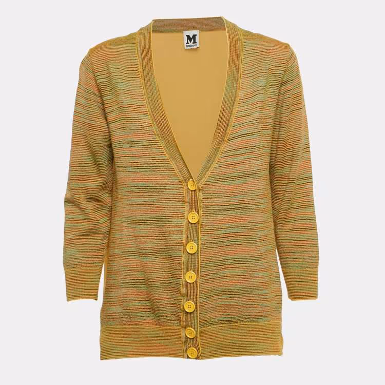كارديغان إم ميزوني مخطط أصفر محاك وحرير بأزرار متوسط