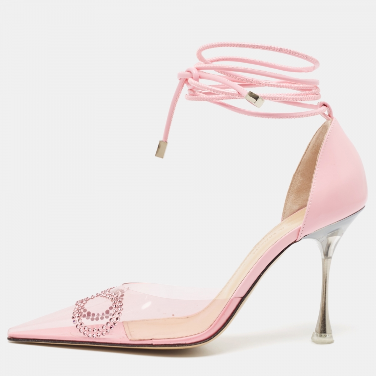 مملوكة مسبقًا صندل ماك أند ماك بي في سي وجلد وردي مزخرف كريستال مقدمة مدببة بحزام للكاحل مقاس 39