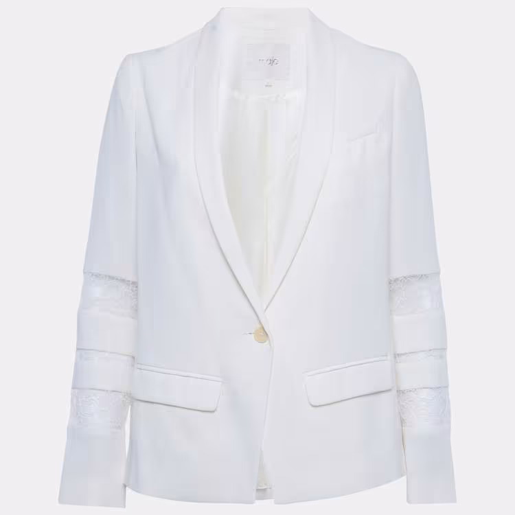 جاكيت بليزر بأزرار تريم دانتيل الماج كريب كريم مقاس صغير - سمول