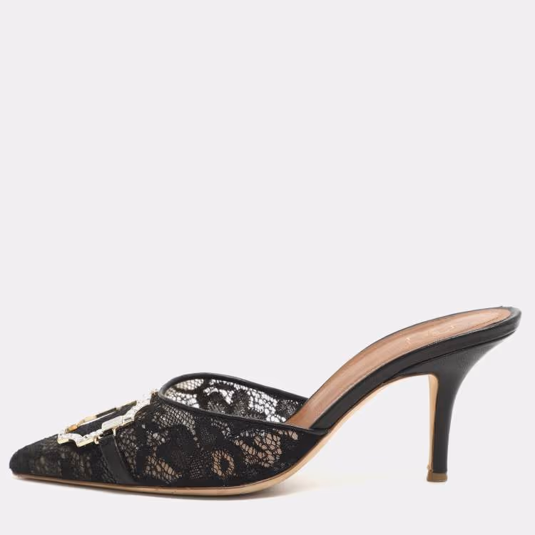 مملوكة مسبقًا حذاء سلايد مالون سولييه ميسي مزين دانتيل أسود مقاس 37