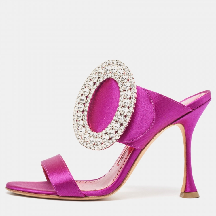Manolo Blahnik Purple Satin Fibiona Slide Sandals Size 36.5