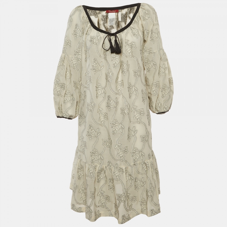 فستان ميدي ماكس مارا استوديو بنقشة زهور أبيض قطن ممزوج منفوش مقاس كبير (لارج)