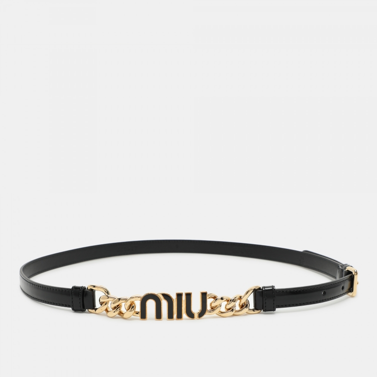 Miu Miu Black Leather Logo Chain Link Waist Belt 85CM