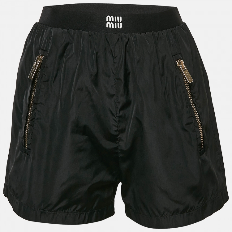 Miu Miu Black Logo-Print Technical Silk Shorts XS
