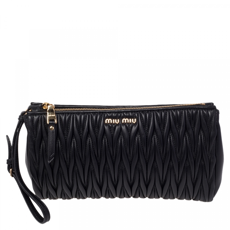 Miu Miu Black Matelassé Leather Wristlet Clutch