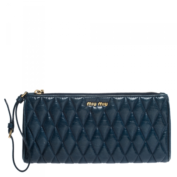 Pre Owned حقيبة كلتش ميو ميو سحاب و حمالة معصم جلد مبطن نمط ألمالسي أزرق