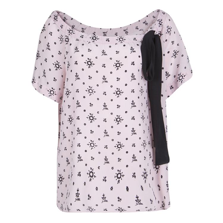 توب ميو ميو أكمام قصيرة رابطة رقبة طباعة زهور وردي فاتح M